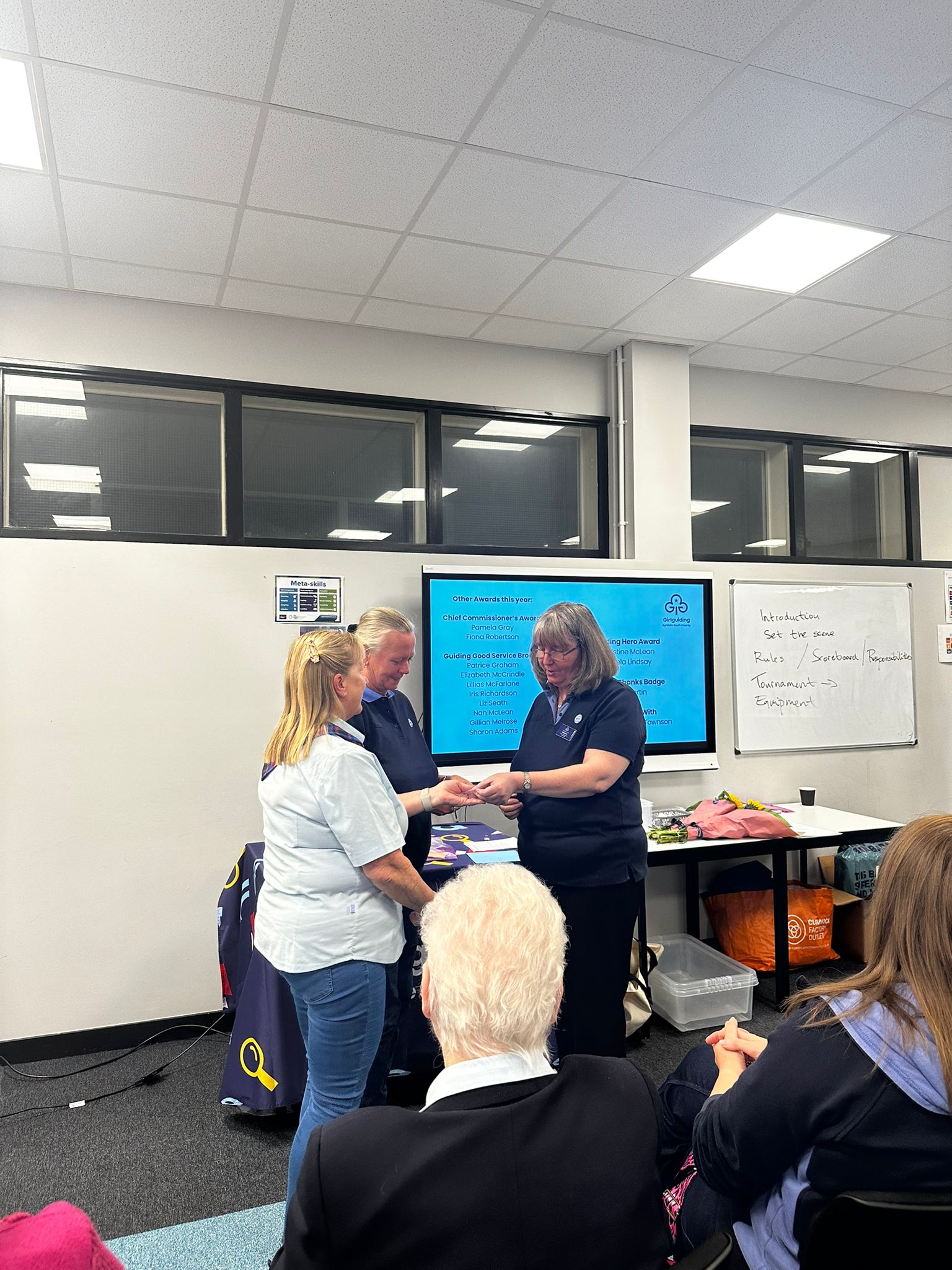 Margaret McCrindle from Cumnock and Tracy Bayne from Prestwick were also presented with their District Commissioner badges!