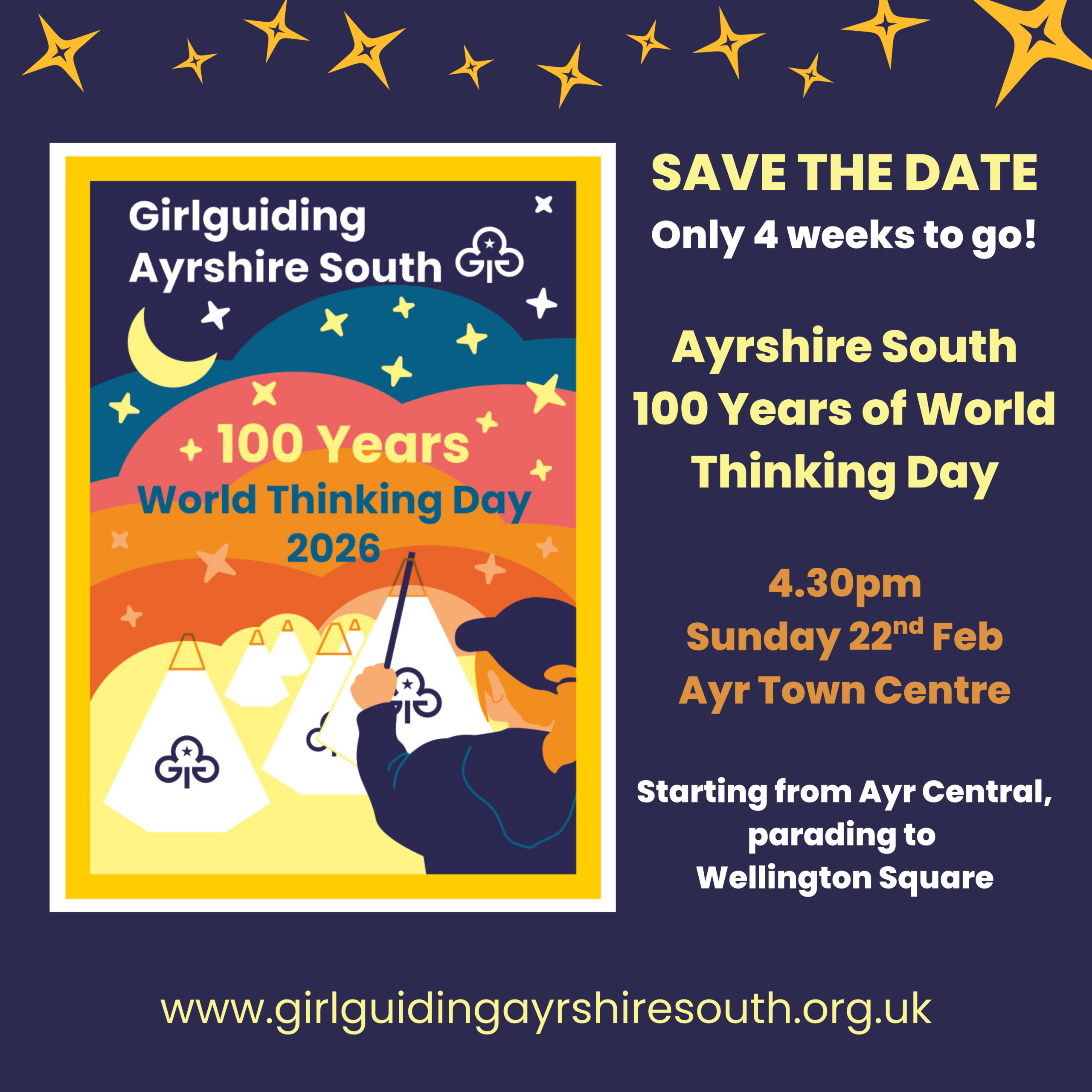 The World Association of Girl Guides and Girl Scouts (WAGGGS) is the largest voluntary movement dedicated to empowering girls and young women in the world, and World Thinking Day has been celebrated since 1926. It’s a day of international friendship and an opportunity to celebrate the Girlguiding and Girl Scouting Movement, speak out on issues that affect young women, and fundraise for 10.8 million Girl Guides and Girl Scouts in 153 countries. To mark the occasion we are running a big event in Ayr – a lantern parade and ceremony in Ayr Town Centre, inviting all of our young members and their families to join us to celebrate the history of the movement. The girls are creating lanterns expressing what Thinking Day means to them, and what it means to be a Guide in 2026, compared to 1926.